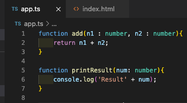 따라서 자바스크립트 파일이 아닌 타입스크립트 파일에 보다 명시적인 타입을 추가 할수있다. 이때 인자앞에 콜론(쌍점) : 을 쓰고 타입을 추가할수있다.