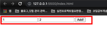 이제 브라우저에서 input 안에 1 과 2를 넣어 add함수가 실행됐을때 콘솔창에 3 이라는 Number 타입이 출력되는걸 볼수있다.