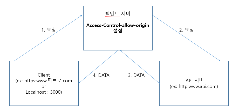 이를위해 express사용하여 프록시 서버(백엔드서버)를 구축하기로했다.