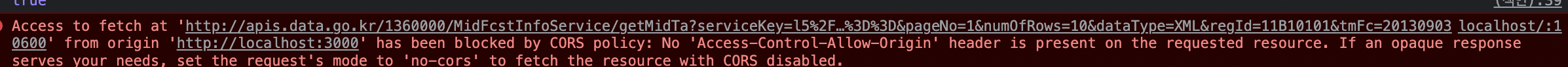 공공데이터 api를 사용하려 했지만 CORS이슈발생, 이유는 클라이언트에서 바로 요청 접근해서 브라우저 관련된 정책이기 때문에 위반된다고 판단하는것이다.
