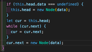 cur 이라는 변수에 class의 this.head 를 넣어주는데 cur = this.head 라고 있었고 이 this.head는 클래스를 참조하는것이였다.