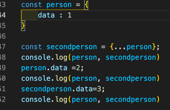 하나더 체크한건 만약 data값은 가져오되 객체를 스프레드 연산자를 사용하여 객체 안에 있는 속성값들만 복사해서 넣어줘 새로만든다면 data값이 바뀌더래도 같이 바뀌지 않는다는걸 확인했다.