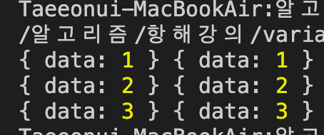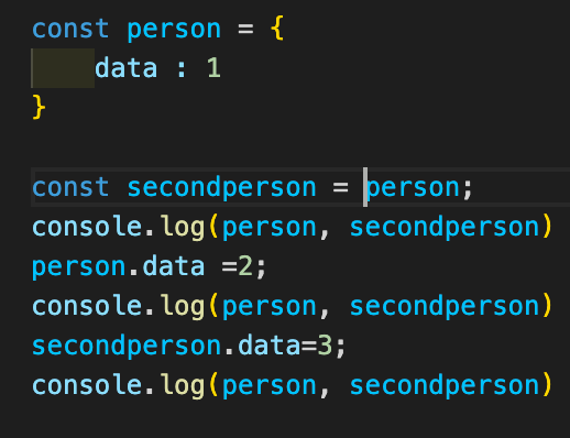 객체 역시 참조하기때문에 data를 바꾸게 되면 둘다 바뀌는걸 확인하였다.