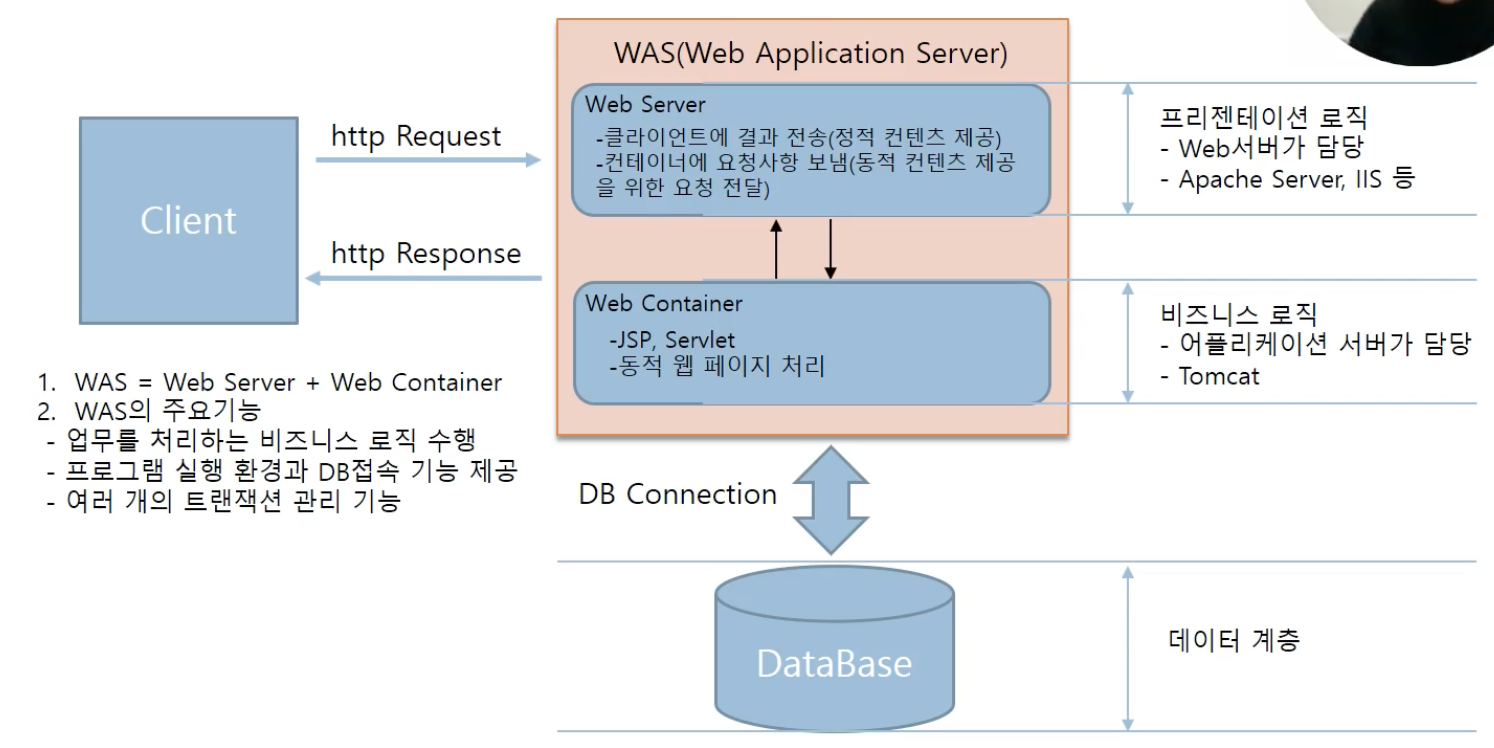 WAS = Web Server + Web Container(JSP, Servlet 등)