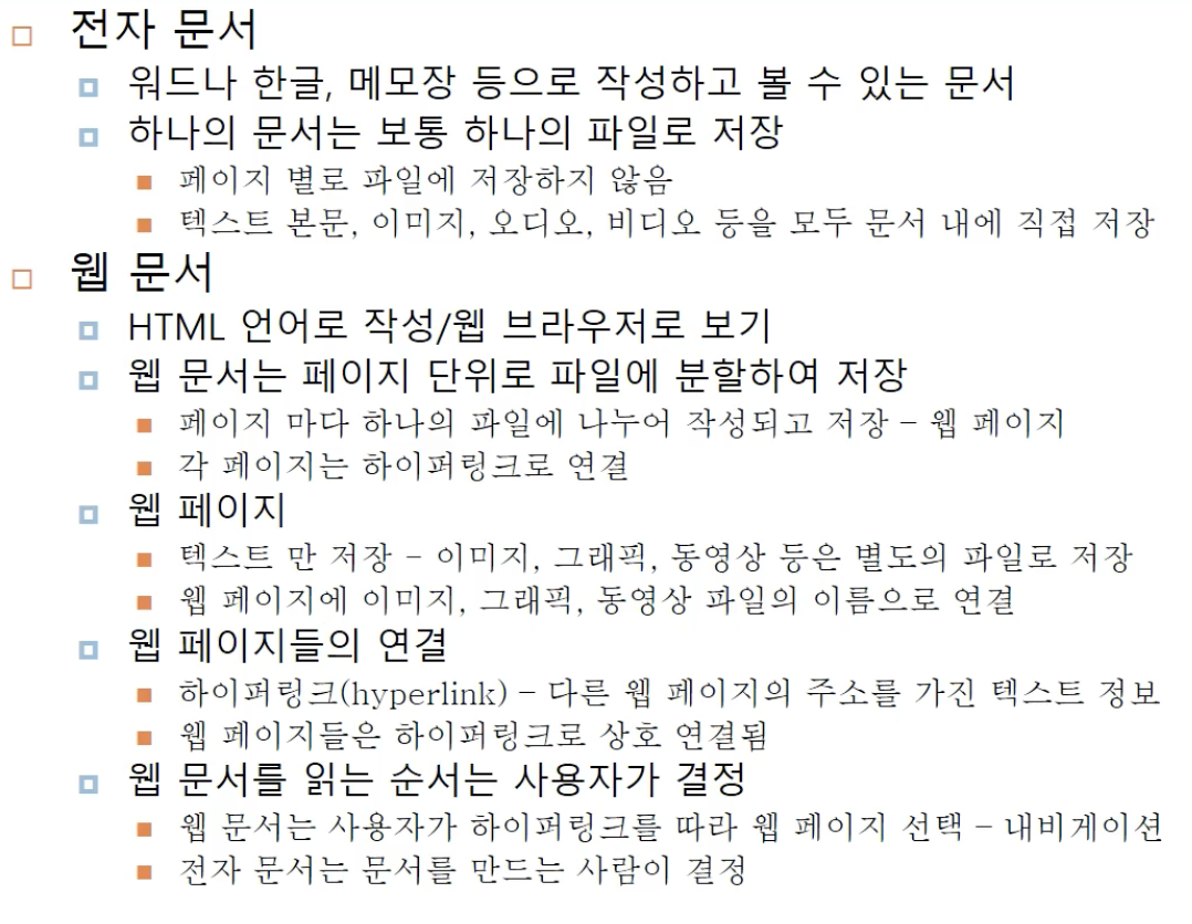 웹에서 다루는 문서를 웹 문서 라고 부름