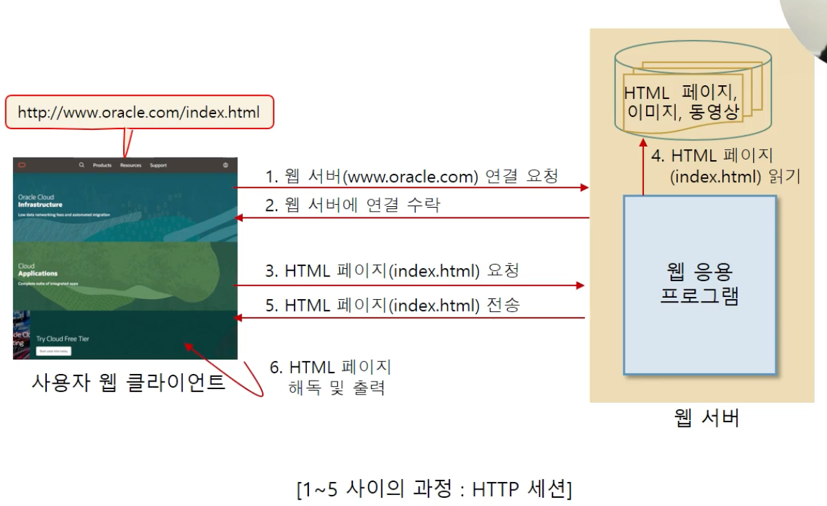 - 웹 서버 응용프로그램의 실행 결과를 웹 브라우저로 전송