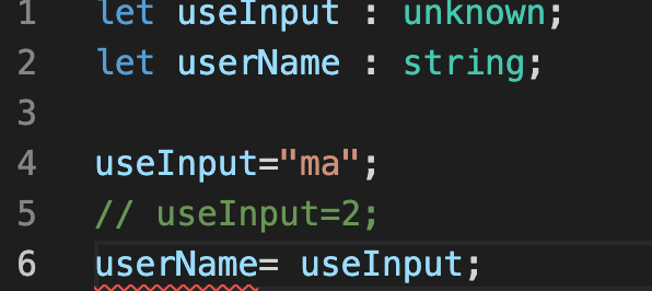 만약 unknown을 쓰면서 userName 변수에 넣어주고싶다면 if 문으로 타입체크를 해야한다.