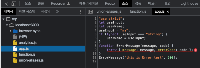또한 에러가 발생하게되면 다른 ts파일이 정상이더래도 컴파일할수없다고 판단하여 어떤 파일도 허용되지 않기 떄문이다. 따라서 이에러를 수정해야만 타입스크립트를 사용하여 컴파일 할 수 있게된다.