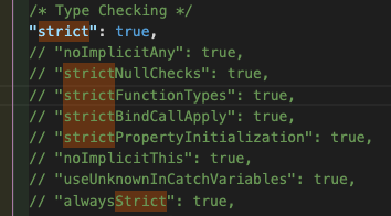 이 옵션을 true 로 하면 아래 사진처럼 strict 아래 다른 옵션들을 하나하나 true로 한설정과 같은 결과이다.