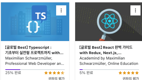 현재 Udemy 를 통해 typescript 강의와 react, 그리고 코딩테스트 강의를 듣고있는데 정말 강추한다.