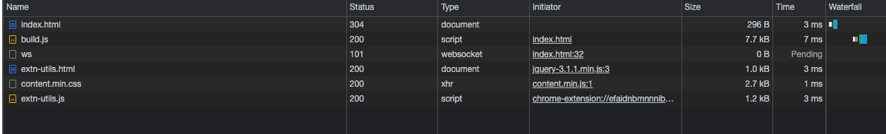 개발자도구에서 Network를 가보면 각각의 네트워크 연결상태와 타입, 사이즈, 걸리는 시간등의 정보를 볼수있고 내가 쓰고자했던 js파일들과 html파일을 가져오는걸 볼수있다. 그런데 만약에 이러한 js파일이거나, css파일, image파일등이 몇백개~몇천개가 되는 어마어마한 큰 프로젝트가 된다고 했을때, 사용자에게도 서버에게도 이러한 엄청나게 많은 파일들을 일일이 불러오는건 좋지 않은 현상이고 이것을 개선하기위해서 생긴게 바로 Webpack 이라는것이다. 이를 쓰게되면 한번에 한가지 파일만 불러오므로 여러모로 좋다고한다.