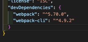 을 통해 package.json 파일을 만들어주고 웹팩을 사용하기위한 패키지 두가지를 설치해준다.