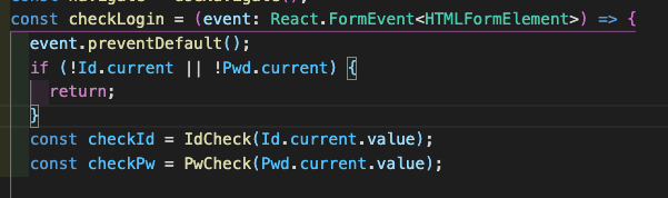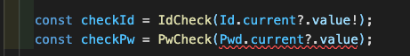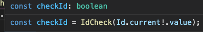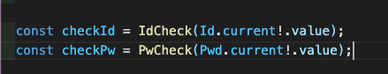 특히 IdCheck 함수안에 넣어주는건데 IdCheck는 string 타입의 파라미터를 받기때문에 ! 가 한번더 붙게 되는거고