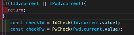 1. if 조건으로 null 일때 return 해버리게하면 아래 Id.current.value 부분 에러사라짐