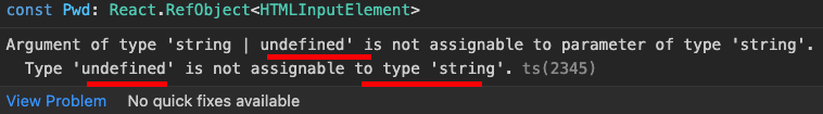 만약 함수 파라미터로 정해진 타입으로 넣어주는게 아니라고 그저 변수에 담는거라면 !을 안쓰더래도 에러가 없다 하지만 변수에도 타입을 명시적으로 해준다면 똑같은 에러가 발생한다.