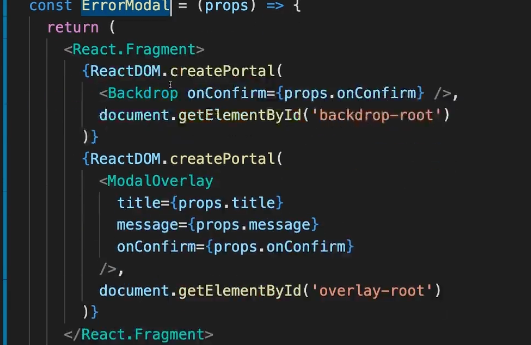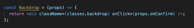 js작성 구역에 아래와같이 해당 div 컴포넌트를 Backdrop 컴포넌트 함수안에 return으로 담아주고