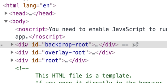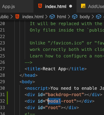 이런식으로 jsx코드 노드가 여러가지 있다고 치면 createPortal을 사용하여, 원하는 html 위치에서 렌더링 되게 할수있다.
