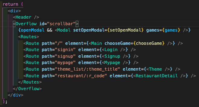위의 사진처럼 전역 window 브라우저상의 스크롤이 아닌 컴포넌트 일정 영역안의 스크롤을 생성할시 보통 window.scrollTo(0,0) 으로 사용하라는 글이 많지만 직접 적용해보면 전체 윈도우에서 스크롤이 생긴게아니라 해당 컴포넌트로 접근해서 스크롤위치를 조절해줘야한다. 따라서 getElementById를 사용하여 시작하는 스크롤 해당 컴포넌트에서 .scrollTo(0,0) 을 해주면된다. 이때 매번 이벤트를 감지하기위해 useLocation을 사용하고, useEffect의 2번째 인자로 해당 경로 path가 달라질때마다 실행하게 하는것이다. 자세한 코드는 아래와 같다.