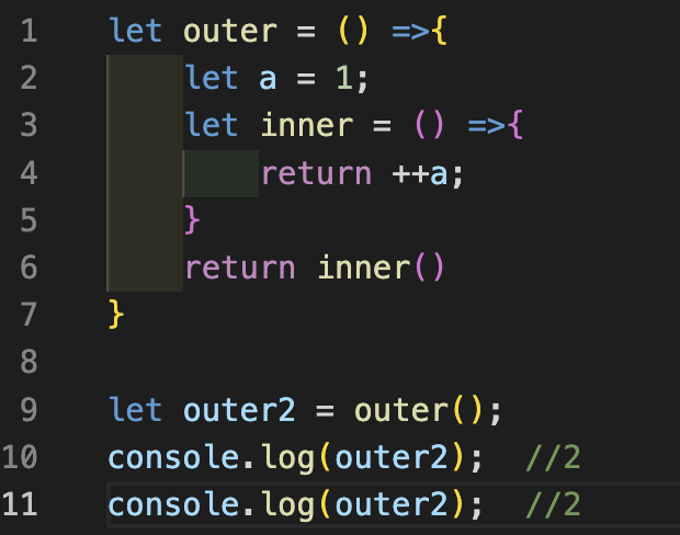 따라서 두번째 콘솔로그에서 outer2를 하면 다시 2가 출력되는걸 확인할 수 있다.
