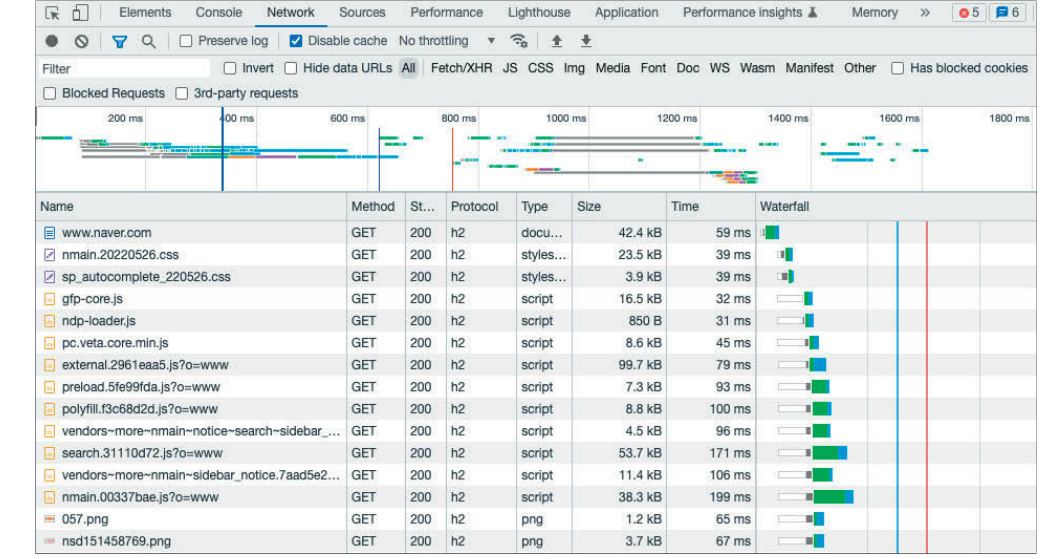 위의 그림과 같이 로딩 성능은 서버에 있는 웹 페이지와 웹 페이지에 필요한 기타 리소스를 다운로드할 때의 성능을 말한다.