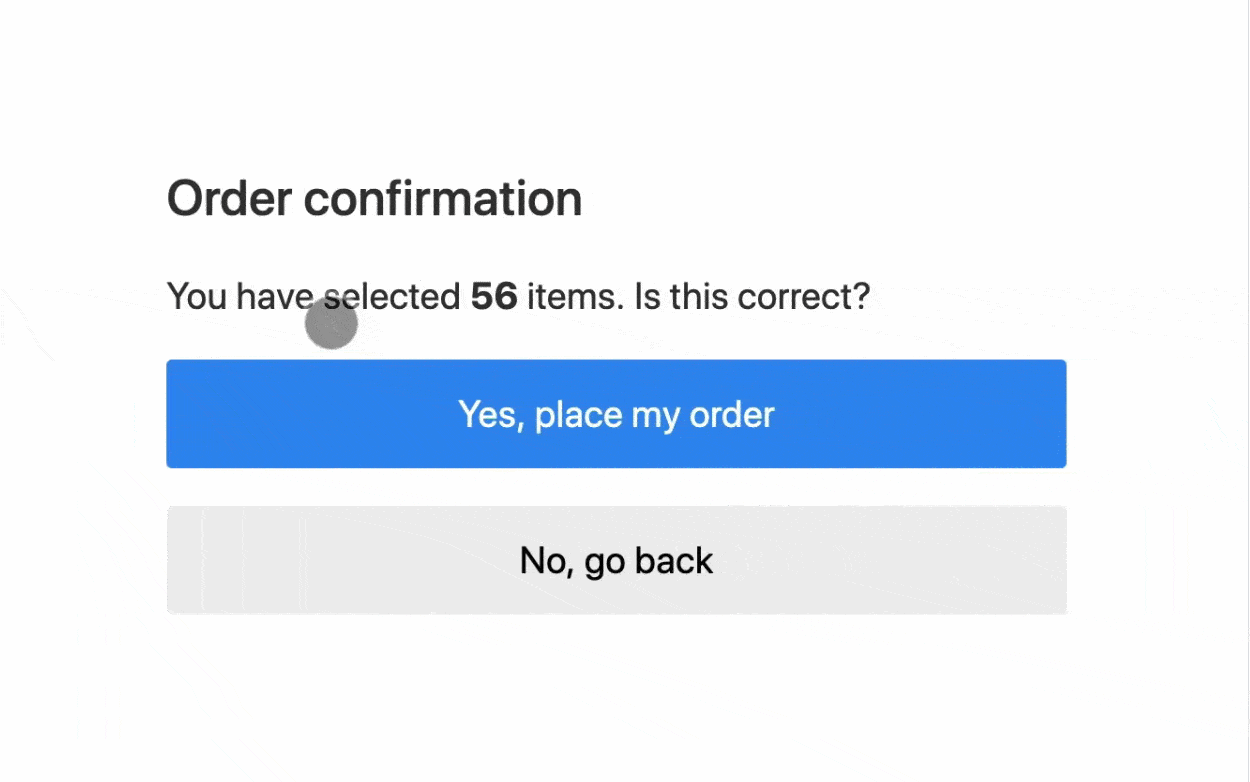 위의 gif그림을 통해서 어떤상황의 문제점을 나타내는지 보여준다. 위의 사진처럼 상단에 느린 로딩 광고가 있다고 할때, 텍스트 부분을 먼저 읽고 있었고 "No, go back" 버튼을 눌러 주문하지않고 뒤로 갈려고 한다고 생각해보자. 누르는 순간 layout shift가 발생하면서 느리게 로딩된 광고가 해당 컨텐츠들을 아래로 밀면서 레이아웃이 밀렸다. 이렇게되면서 돌아가려고 클릭했던 이전 버튼뿐만아니라 주문 버튼도 밀리면서 "Yes, place my order"를 누르게 되어 원하지 않는 주문을 하게 되는 현상이다.