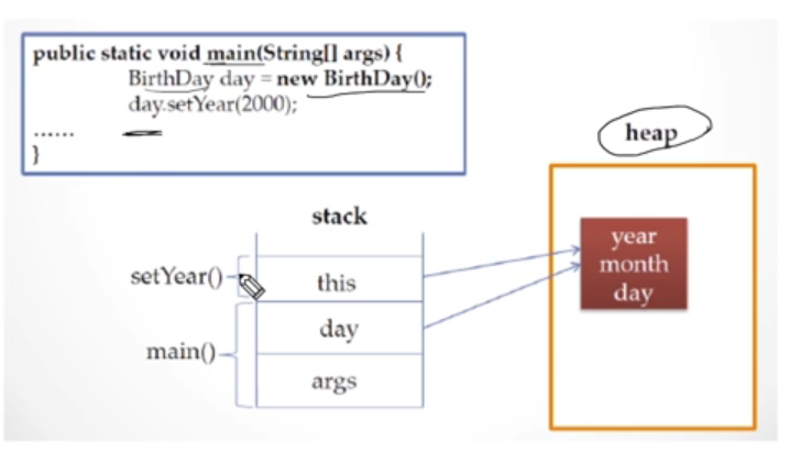 각 instance객체 클래스마다 힙메모리(동적메모리)를 가진다. 이 힙 메모리는 garbage collector 가 주기적으로 사용하지 않는 메모리를 제거한다.