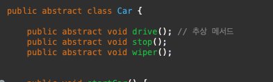 추상 클레스 및 추상 메서드는 다른곳에서 쓸때 해당 메서드가 정의되어 사용해야한다.