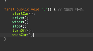 추상 메서드나 구현된 메서드를 활용하여 코드의 흐름(시나리오)를 정의하는 메서드이다.