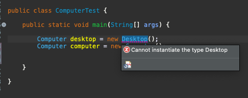 아래처럼 abstract을 붙인 클래스가 있다면 아래와 같이 new 를 통한 새로운 인스턴스 정의는 할수 없다.