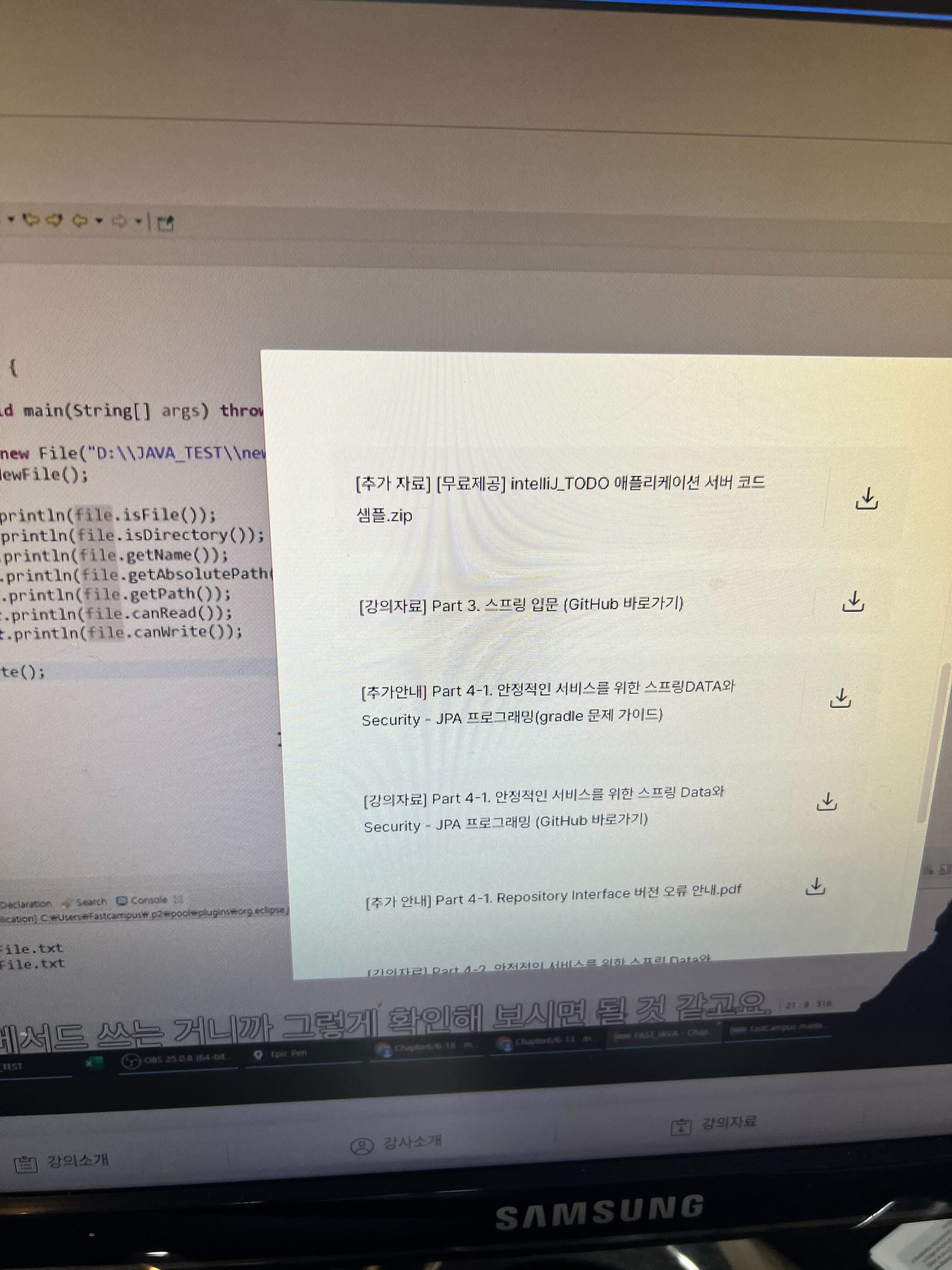 또 좋았던점은 강의자료를 제공해줘서 강의를 들으면서도 해당 코드나 이론 등을 쉽게 찾아볼수있고 복습하기도 좋다.