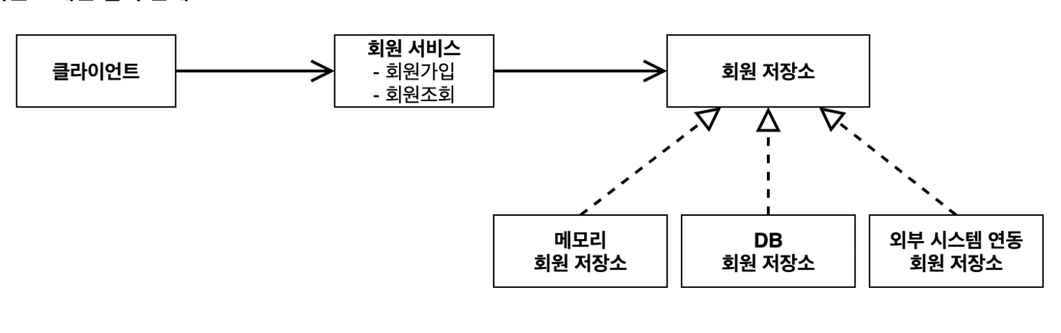 예를들어 할인 정책이 아직 확실히 정해지지않았다면 10%, 20%, 혹은 정액일지 정률일지등에 따라 해당 주문에 영향을 미친다고 할때 이러한 할인 정책 역할이라는 큰 인터페이스를 만들어놓고 그때그때 바꿀수있는 구현체를 만들어 갈아끼면 된다.