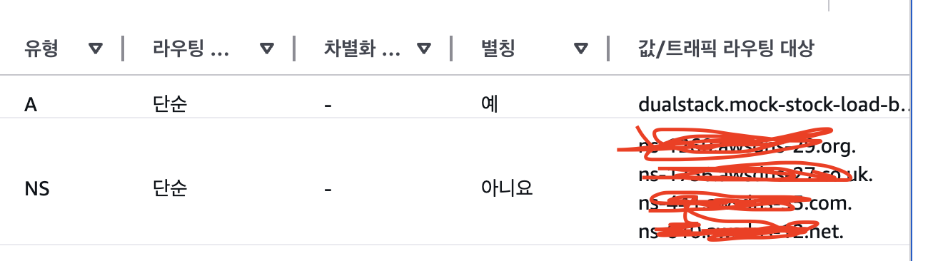 그리고 유형 A를 보면 값부분에 IP주소가 아닌 문자열 주소값으로 되어있는데 앞서 말한 로드밸런서를 만들었기때문에 해당 로드밸러서 그룹으로 연결되도록한것이다. 그럼 로드밸런서는 이 트래픽요청을 받고 분산된 또는 특정 Ec2 Ip 정보를 전달 또는 http요청을 하는것이다.