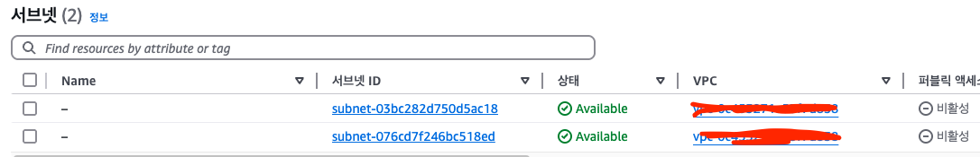 어쨌든 EC2자체와 로드밸런서 유지를위한 서브넷을 제외한 나머지 두개는 사용하고있지않아서 삭제하였고 아래와같이 구축해놨다.