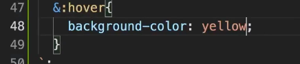 styled components 문법중하나가 `` 안에 & 를 쓰면 나자신이라고 나타내는것이다 따라서 &:hover 는 나자신에 hover 가 발생하면 실행한다 라는 문법이다. 즉 위에서 MyStyled 라는 변수의 styled components 가 나자신을 의미한다. 그 영역에 마우스를 가져다대면 색이 노란색으로 변한다.