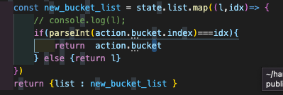2. 수정하기를 누르면 update가 되는데 이때 리듀서의 update 케이스 부분에서 map 함수로 새로운 list를 만들때 수정하려고 받은 데이터 인덱스부분과 map 인덱스와 같으면 그인덱스 부분에 해당하는 배열객체 순서에 데이터를 넣어주고 그외엔 기존의 state 값들을 넣어줌. 그렇게 map함수를 통해 만들어진 새로운 list 변수를 return 에서 list 키 객체 값으로담아줌
