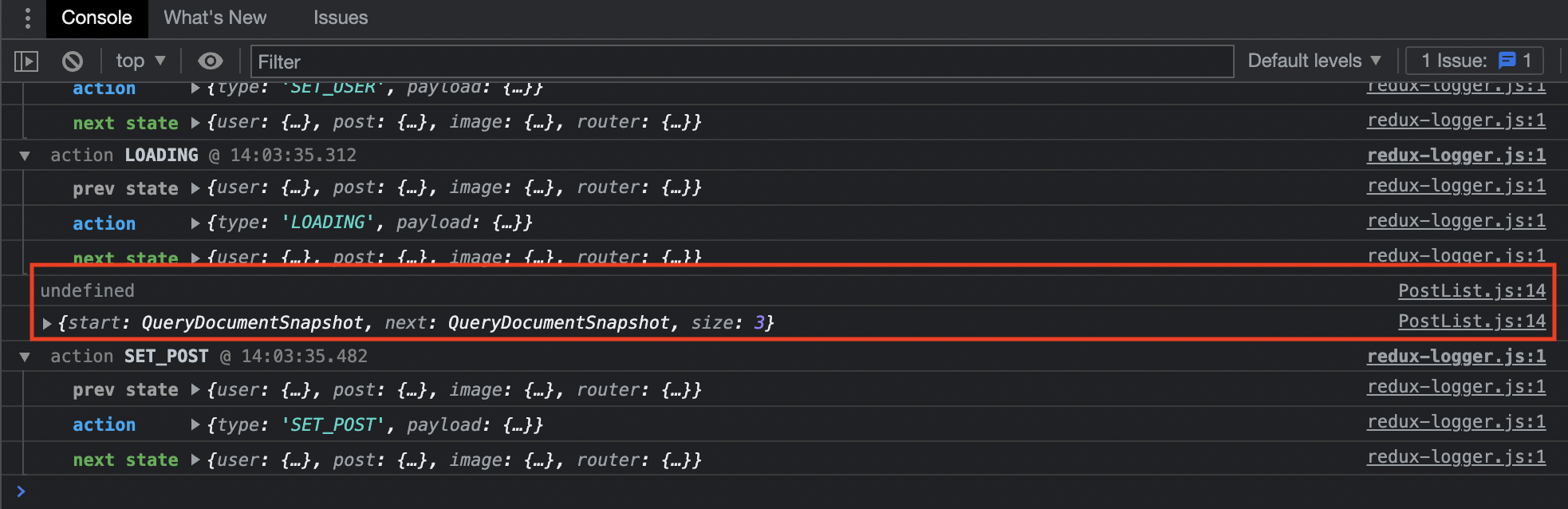단순히 키값의 대소문자로인해서 paging 이 Paging 으로인해서 오류난것인데. 접근하는 방법을 순서대로 역순으로 로직을 따라가게 도와주셨고 처음 useSelector 에서 가져와도 초기 initial 키값이 다르므로 paging는 undefined 로 된거고, 3번째 사진에서 getPostFB를 통해 query부분에서 다시 paging 값을 할당해주고 그값을 useEffect에서 가져와서 그때 제대로 찍혔던거였다