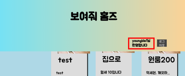 이때 text {nickname}님 환영합니다 를 넣어서 해당 닉네임으로 로그인한사람을 브라유저상에서 보여주게 한것이다.