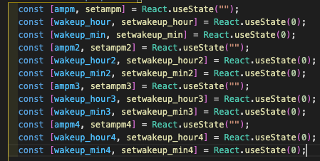 이때 setwakeup_hour 이라는 Reat.useState()을 사용하여 return 부분 렌더링에 바로 변화하는걸 보여주기위해 설정해준다.
