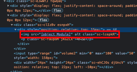 검사페이지의 elements에서 해당 태그 부분을 보면 src="[object Module]"이라고 뜨는걸 알수있다.
