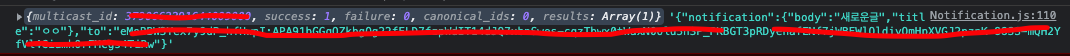 이렇게 추가한 token은 좀전에 getToken()을 이용하여 얻어온 값이다. 그렇게 하면 위에처럼 푸쉬알림이 뜬다.