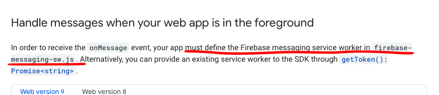 공식사이트 참고 : https://firebase.google.com/docs/reference/js/messaging_