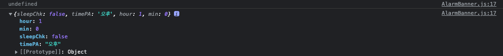 만약 userNotice.time 속성이 존재하거나 값을 가진다면 sleepChk에 접근하는것이다. 이를 실행해보면 TypeError가 사라지는것을 볼수있다.