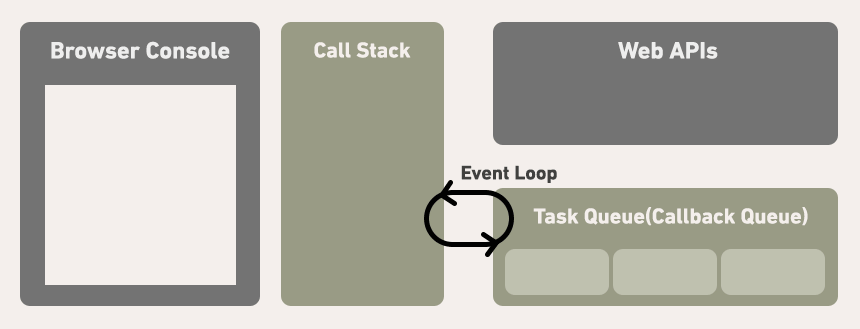 이때, 함수에 포함된 콜백 함수들은 즉시 사라지지 않고 Task Queue라는, 콜백 함수들이 대기하는 큐 형태의 배열에 들어가게 된다. 그리고 이벤트 루프는 호출 스택이 비워질 때마다 큐에서 콜백 함수를 꺼내와서 실행하는 역할을 한다.