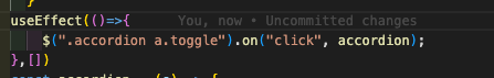 다음과 같이 useEffect를 사용하여 jQuery메서드 on 으로 해당 요소를 이벤트 등록을 해주었다.