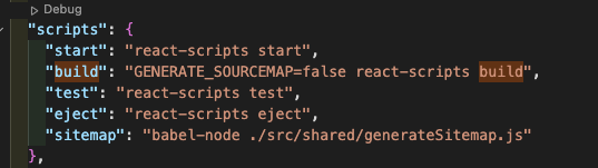 "build": "cross-env GENERATE_SOURCEMAP=false react-scripts build"