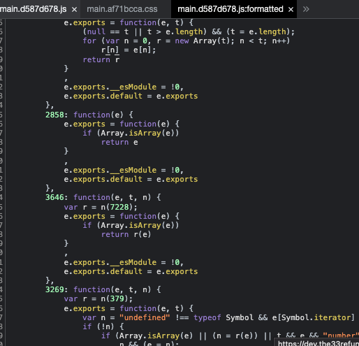 Sourcemap은 creact-react-app으로 프로젝트를 빌드시 다음과 같이 build 폴더에 static으로 생성되는데 .css.map이나 .js.map의 형식으로 되어있는경우 배포시 기본적으로 webpack으로 번들링된 파일과 대응되는 sourcemap이 생성된다. 아래처럼 브라우저에서 원본 소스처럼 볼수있다