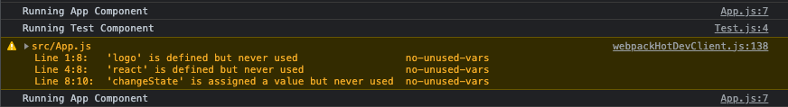 아마 App console.log는 두번, Test console.log는 한번만 이뤄질거라고 생각하는 이들이 많다고 생각한다. 업데이트가 이뤄지지 않기때문에 Test 컴포넌트를 재평가/재실행 역시 안한다고 생각하기 때문이다. 하지만 결과는 그렇지 않다.