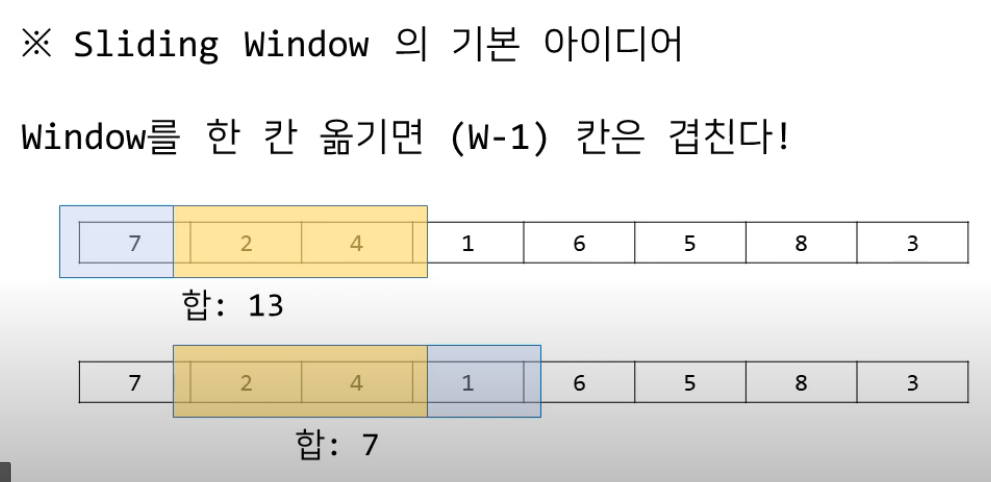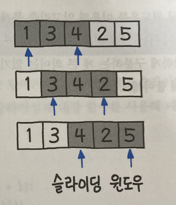 고정 사이즈의 윈도우가 이동하면서 윈도우 내에 있는 데이터를 이용해 문제를 풀이하는 알고리즘