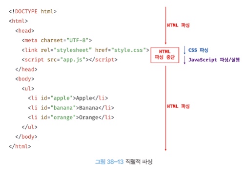 여러개의 script 태그에 async를 지정하면, 태그의 순서와 상관없이 먼저 로드가 완료된 순서부터 실행, 이때 HTML 파싱은 멈춤