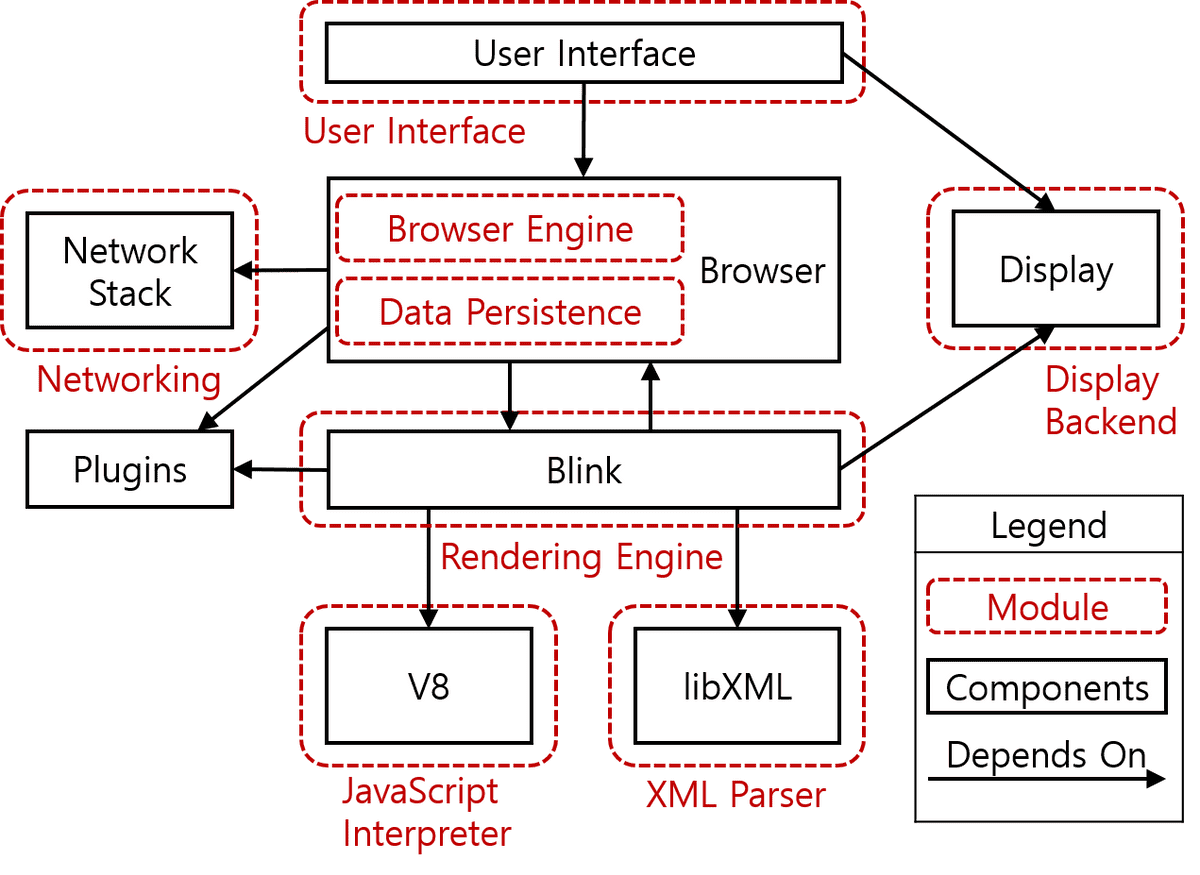 그렇다면 기본 브라우저의 구성은 어떻게 되는지도 그림을 통해서 이해할 필요가 있다. 그래야 다음 아래 자세한 설명에 대해서 어떤것을 이야기하는지 알 수 있기 때문이다.